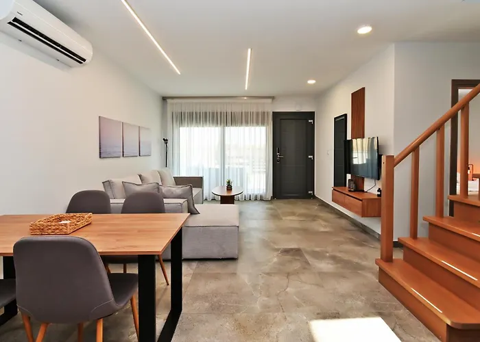 La Agios Nikolaos Villas cuenta con una cocina bien equipada para cocinar y pone a tu disposición hervidor eléctrico, horno y menaje de cocina. Los huéspedes pueden disfrutar de una comida en el restaurante Tapas Pizza, situado a tan solo 7 minutos a pie. Las alternativas de transporte en la zona incluyen la parada de autobús Agios Nikolaos, situada a 250 metros.